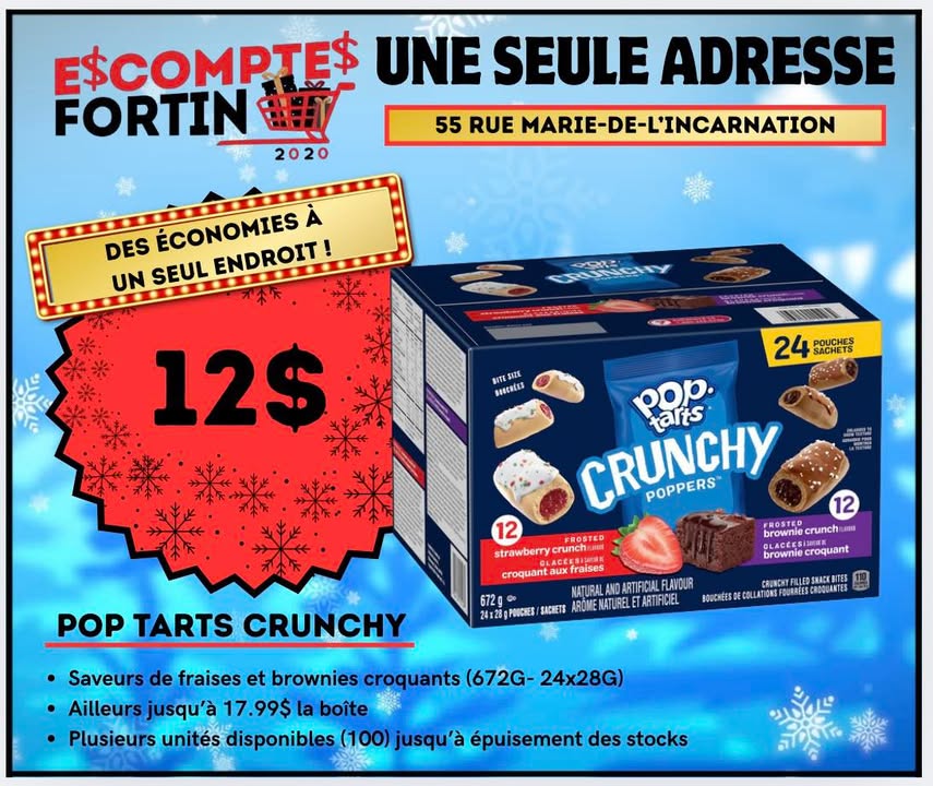 2/5.00$ ou 2.99$ l’unité (396G) - Ailleurs jusqu’à 6.50$ la boîte - 200 unités de disponibles