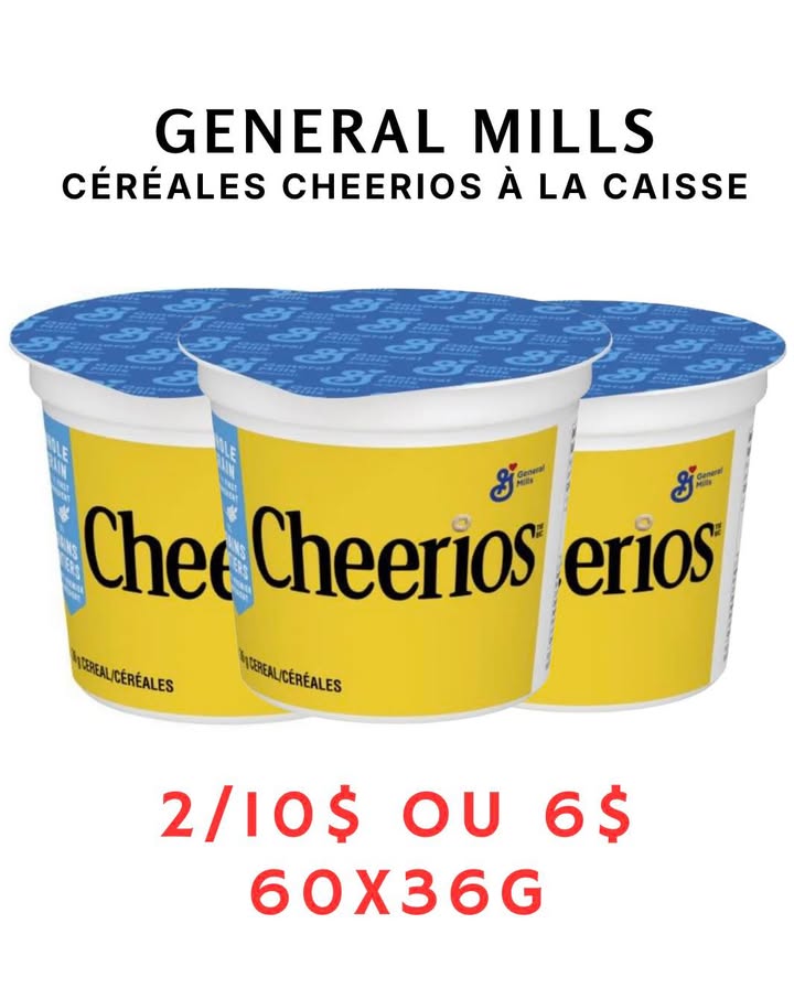 NOUVEL ARRIVAGE DE CÉRÉALES CHEERIOS - 19 JANVIER Facile et rapide pour vos petits déjeuners ou même la collation Ailleurs jusqu’à 1.00$ l’unité Quantité limitée