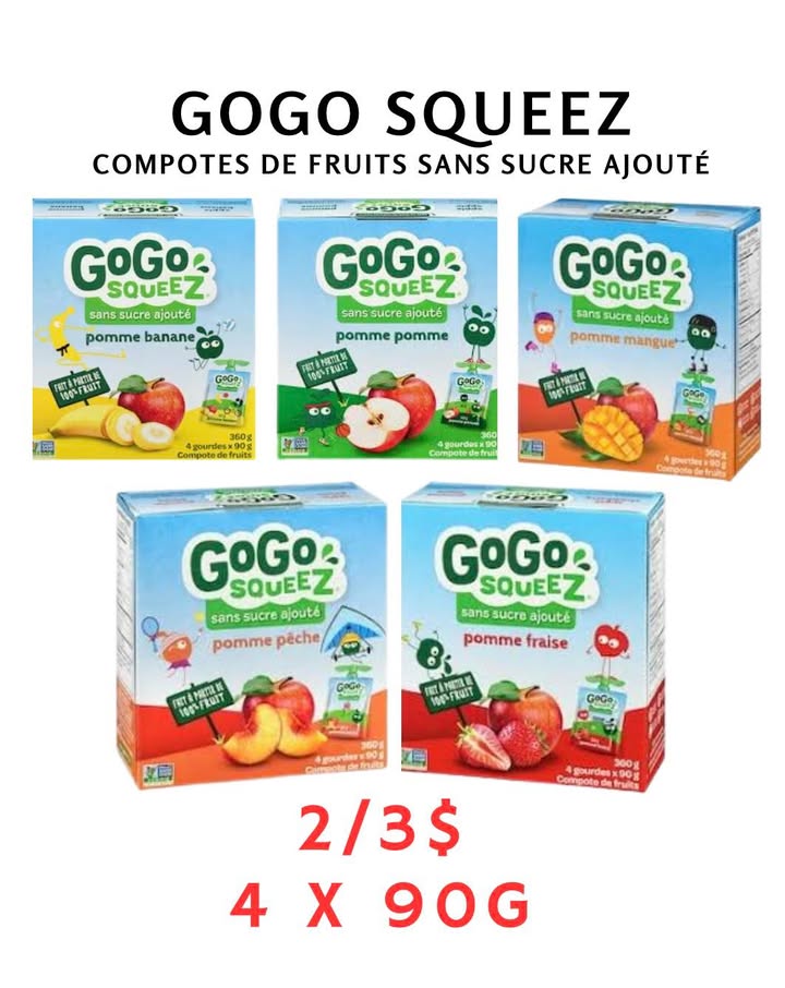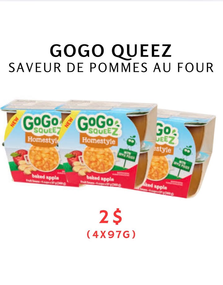 NOUVEL ARRIVAGE DE GOGO SQUEEZ SAVEUR DE POMMES AU FOUR - 21 JANVIER Ailleurs jusqu’à 4.50$ l’unité Quantité limitée