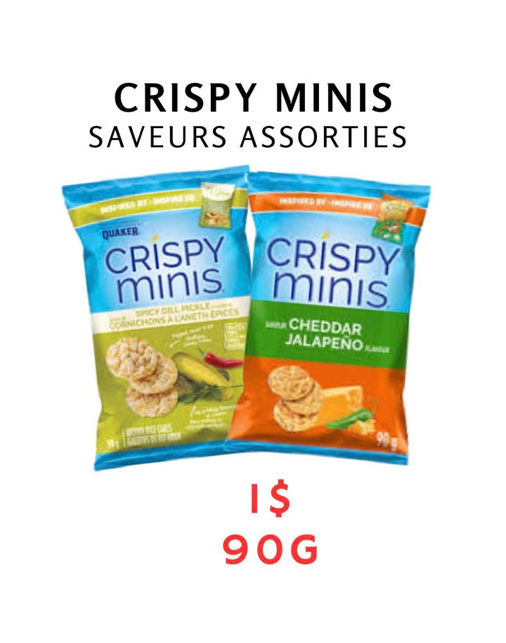 NOUVEL ARRIVAGE DE CRISPY MINIS SAVEURS ASSORTIES - 21 JANVIER Ailleurs jusqu’à 3.99$ l’unité Quantité limitée