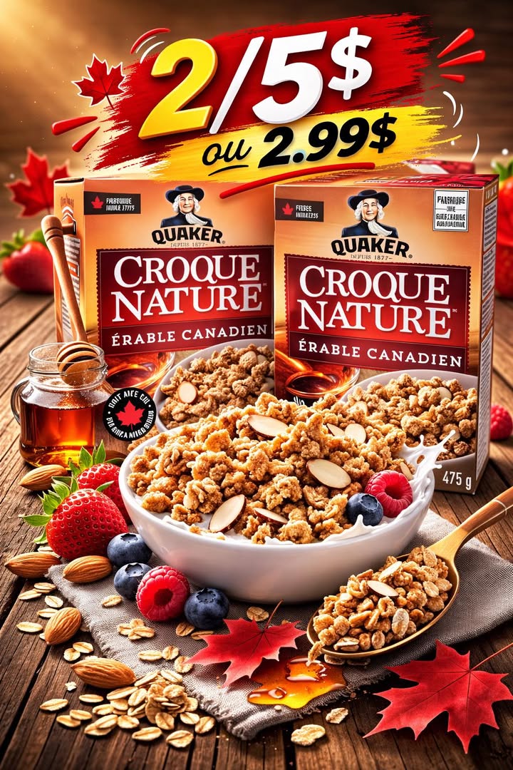 NOUVEL ARRIVAGE DE GRUAU POMMES ET CANNELLE FORMAT FAMILIAL Ailleurs jusqu’à 7$ l’unité Quantité limitée
