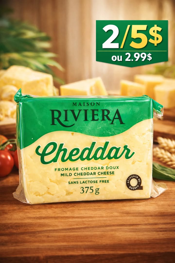 NOUVEL ARRIVAGE DE FROMAGE CHEDDAR - 25 FÉVRIER Ailleurs jusqu’à 10.49$ Quantité limitée